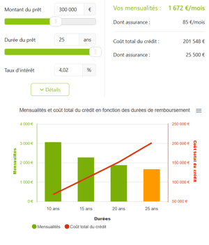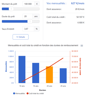 Le simulateur vous permet également de comparer les mensualités relatives à différentes durées et à différents taux d'intérêt.