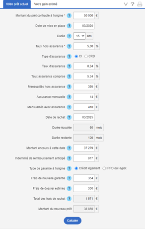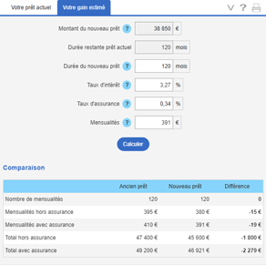 Ce simulateur traite le cas du rachat d'un prêt et donne les divers éléments permettant de comparer l'ancien et le nouveau crédit.