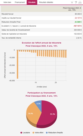 Le simulateur Pinel / Pinel+ calcule votre économie d'impôt, votre excédent / besoin de trésorerie et la rentabilité de votre investissement locatif Pinel / Pinel+.
