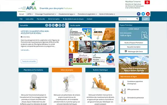 Conception du site web de l'Agence de Promotion des Investissements Agricoles. Les site est réalisé sous Joomla et comporte également des développements spécifiques, notamment des formulaires en ligne et leur gestion en back-end.